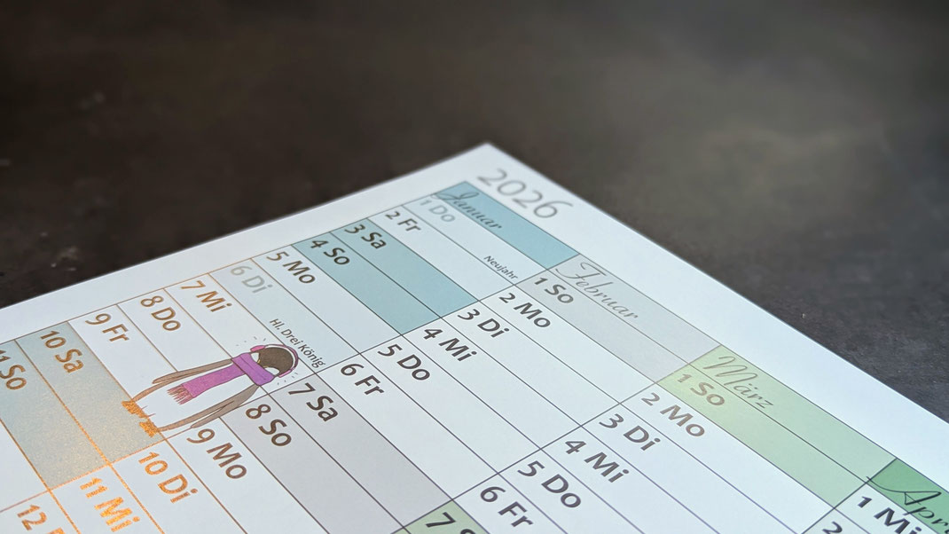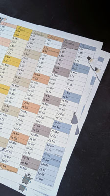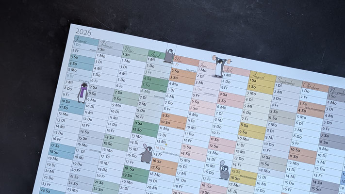 Jahreskalender mit Pinguin Illustrationen Bayrischen Ferien und Feiertagen